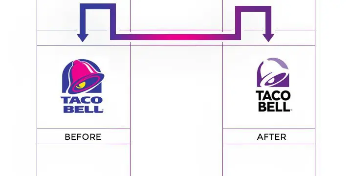 Una vez más, una importante compañía adoptó un enfoque aburrido con su nuevo diseño. El rediseño de Taco Bell está claramente destinado a atraer a la generación del millenial, manteniendo el reconocimiento de la marca de forma fácil sin diferencia substancial de su antiguo aspecto. Sin embargo, la elección de la fuente es horrible, y los diferentes tonos de púrpura son desagradables a la vista.